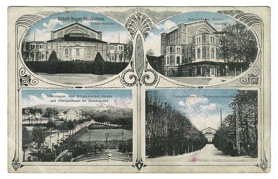 Ansichten von Bayreuth  Ansicht um 1914 Richard Wagner - Festspielhaus  Bayreuth Markplatz  Ansicht um 1918