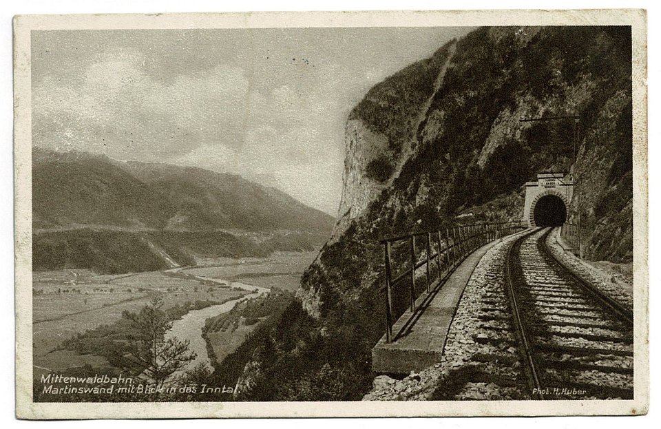 Mittenwaldbahn - Martinswand m. Blick in das Inntal  Alpiner Kunstverlag Hans Huber, München 19 - Nr. 288 Ansicht um 1932