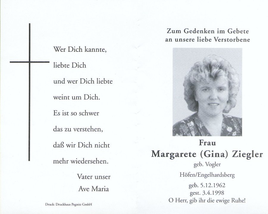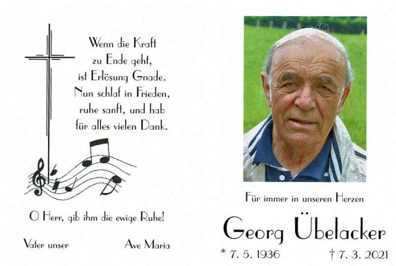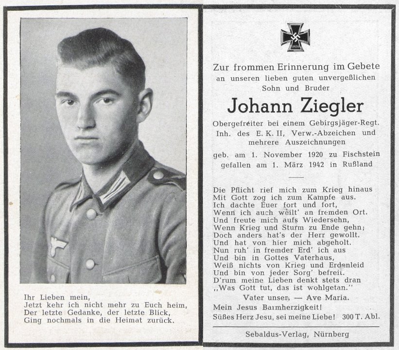 Ziegler Johann 01.11.1920-01.03.1942 Ziegler Margarete geb Vogler 05.12.1962-03.04.1998 Übelacker Georg 07.05.1936 - 07.03.2021