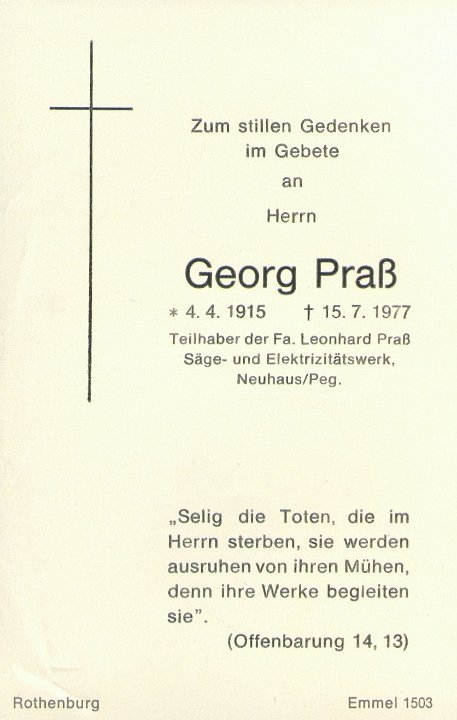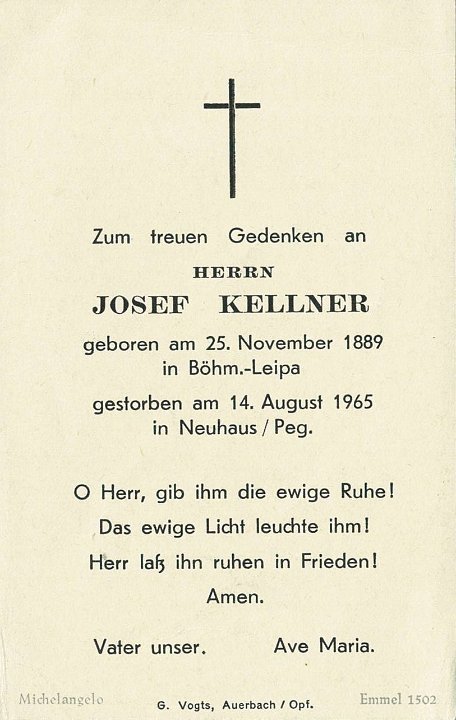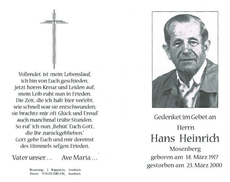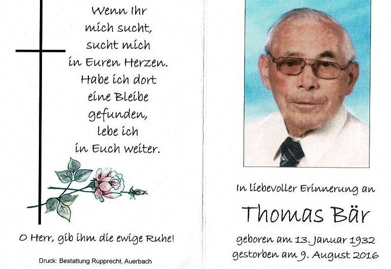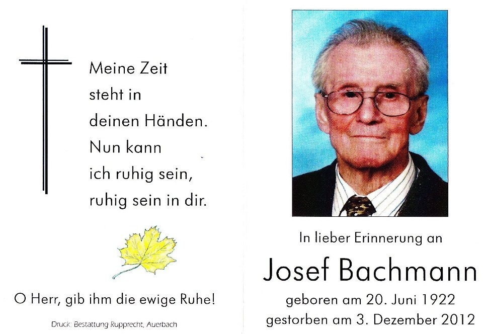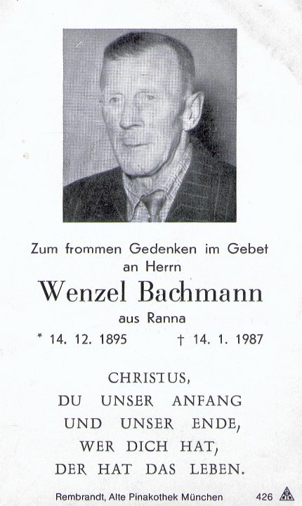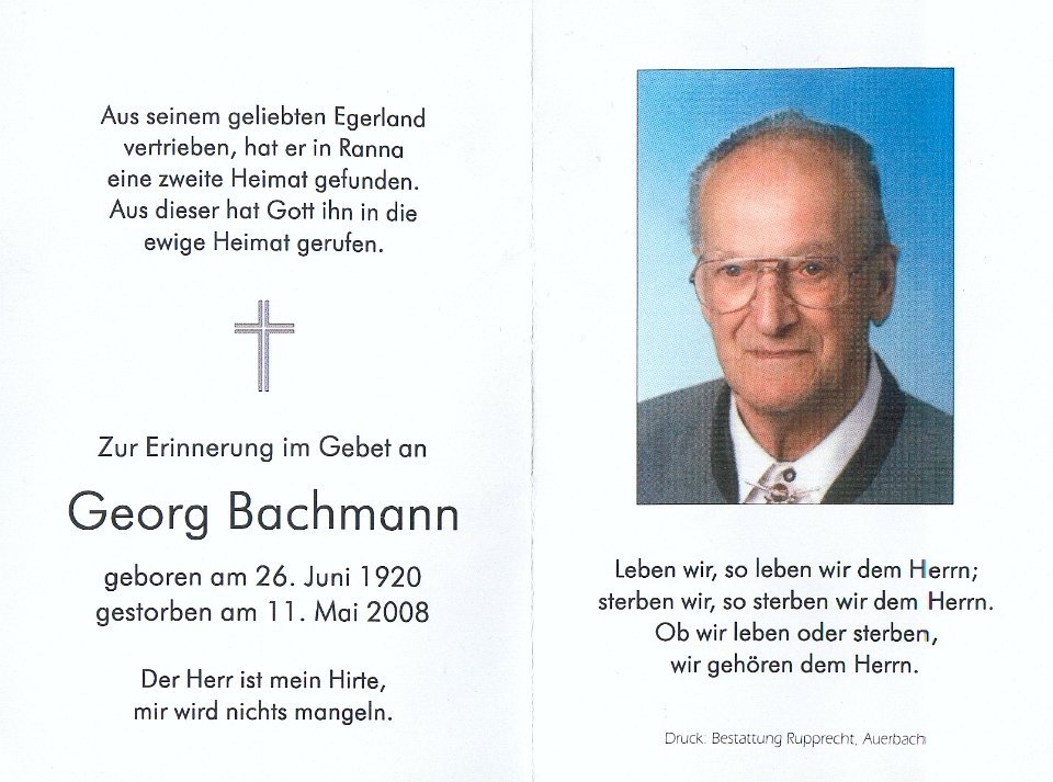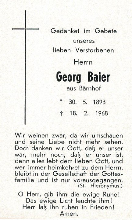 Bachmann Georg 26.06.1920-11.05.2008 Bachmann Josef 20.06.1922-03.12.2012 Bachmann Wenzel 14.12.1895-14.01.1987 Baier Georg 30.05.1893 - 18.02.1968
