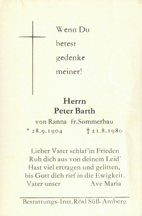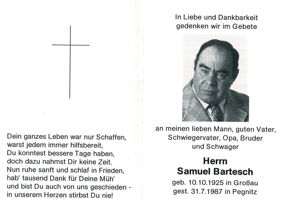 Bartesch Samuel 10.10.1925-31.07.1987 SB Barth Peter 28.09.1904-21.08.1980 Barth Siegfried 21.06.1934-03.10.1993 Bauer Georg 07.04.1940 - 29.03.2012