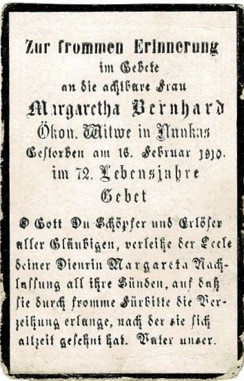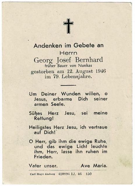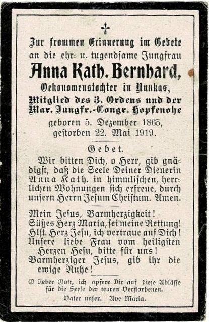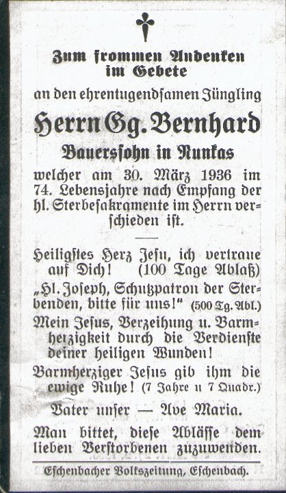 Bernhard Georg 1862-30-03.1936 Bernhard Georg Josef 1867 - 12.08.1946 SB Bernherd Anna Katharina 05.12.1865 - 22.05.1919 SB Bernherd Margaretha geb. N N 1838 - 16.02.1910 SB