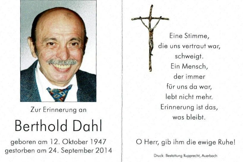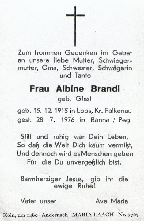 Berthold Dahl 12.10.1947 - 24.09.2014 Brandl Anna geb Lehner 24.11.1919 - 12.07.2012 Brandl Paula 20.02.1913 - 31.10.1984 Brandl Albine geb Glasl 15.12.1915-28.07.1976