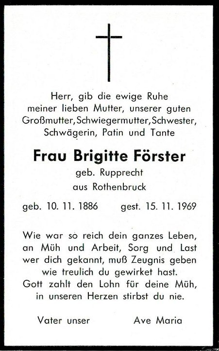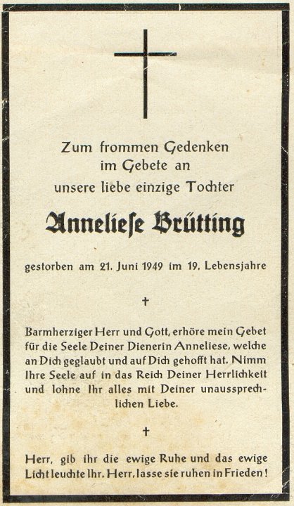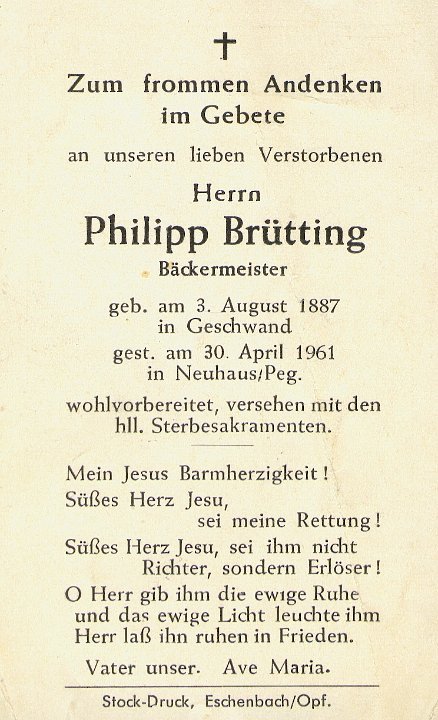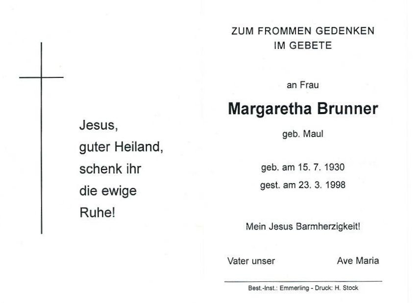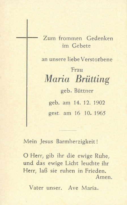 Brunner Margaretha geb. Maul - 15.07.1930 - 23.03.1998 SB Brütting Anneliese 1930-21.06.1949 Brütting Maria geb Buettner 14.12.1902-16.10.1965 Brütting Philipp 03.08.1887-30.04.1961