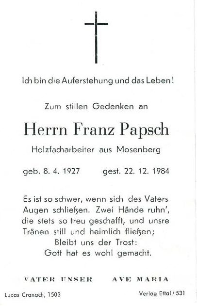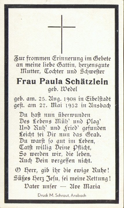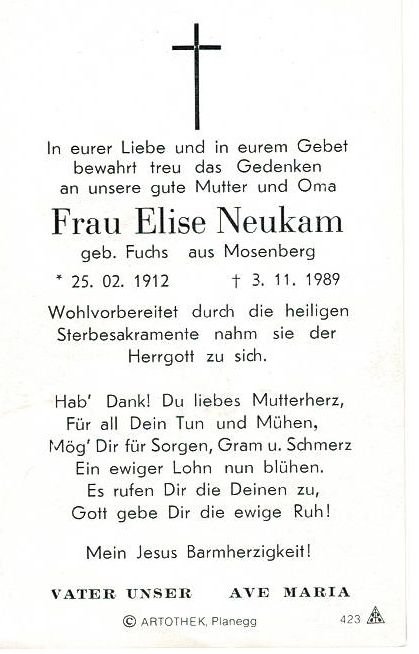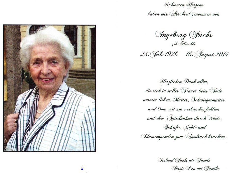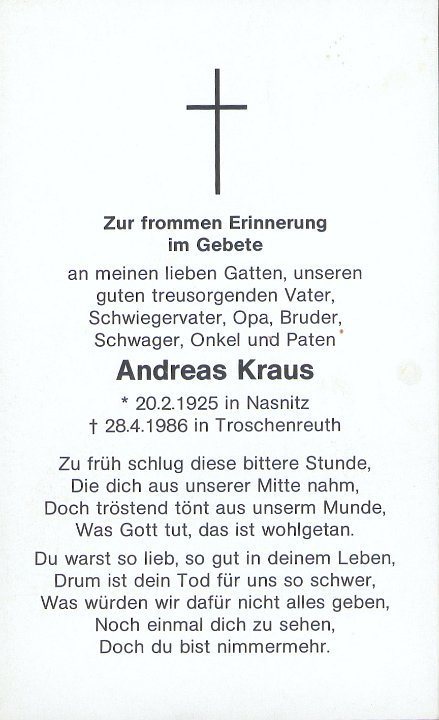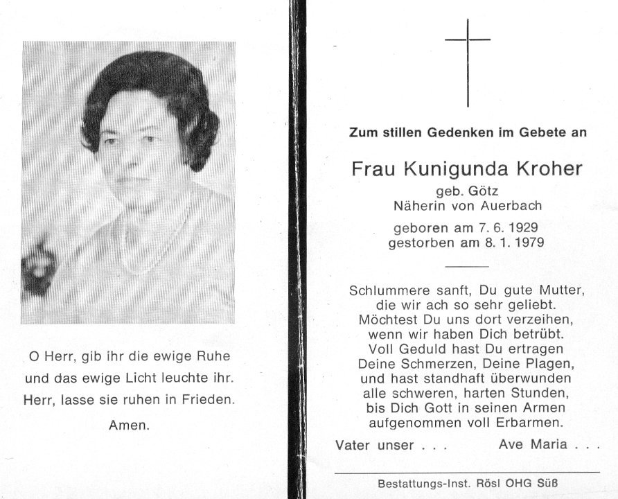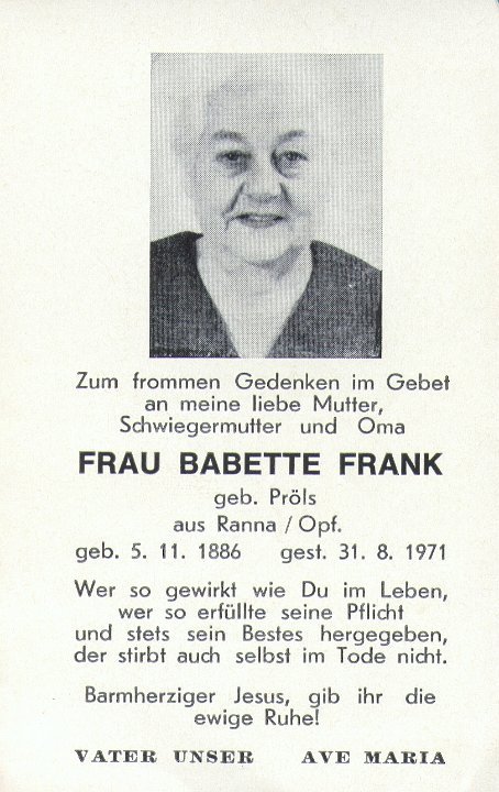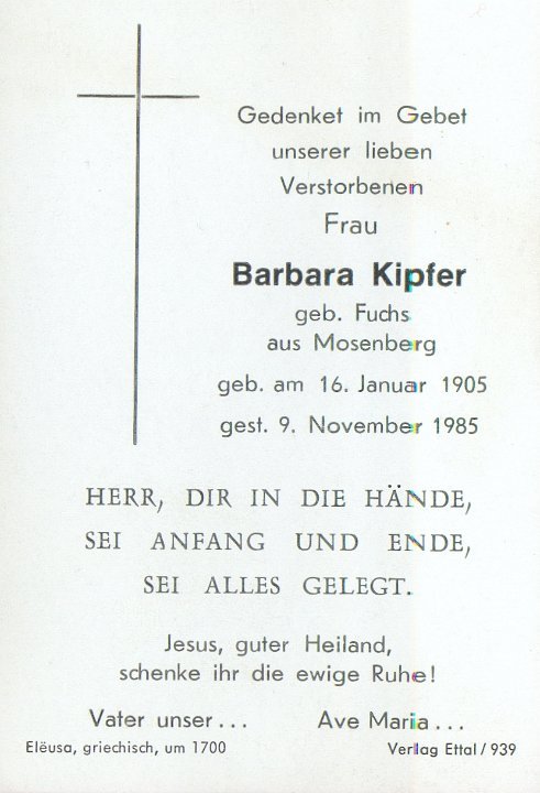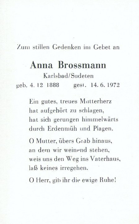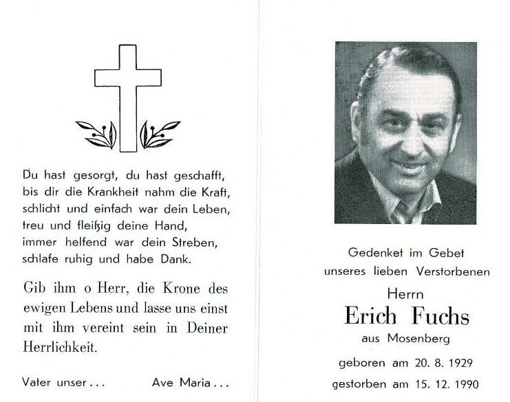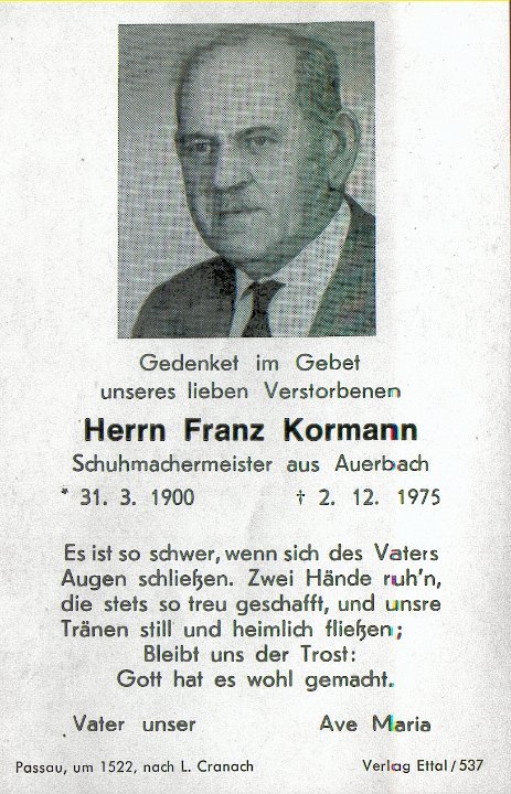 Fuchs Andreas 21.04.1885-12.11.1971 Fuchs Babette geb Lindner 08.10.1896-18.05.1977  Meine Oma Fuchs Berta geb. Schwemmer 29.07.1930 - 21.09.1994 SB Fuchs Dr. Hans-Karl 24.09.1920-11.12.1994  Mein Onkel