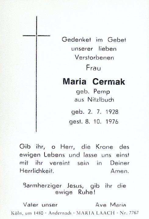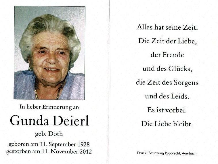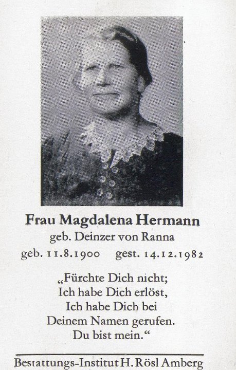 Cermak Maria geb Pemp 02.07.1928-08.10.1976 Dahl Maria geb Scheibeck 04.05.1926-19.01.2008 Deierl Gunda geb. Döth 11.09.1928 - 11.11.2012 Deinzer Christoph 22.08.1897.23.05.1976