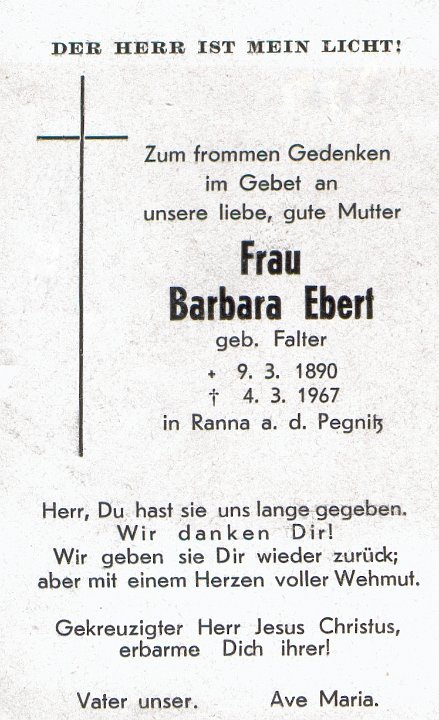Dürnhofer Sonja 09.04.1972-24.05.2019 SB Ebert Kurt 17.09.1939 - 30.03.2018 Ebert Barbara geb Falter 09.03.1890-04.03.1967 Ebert Kurt 27.06.1980-05.09.1998