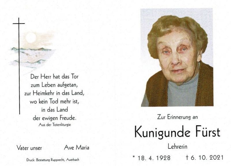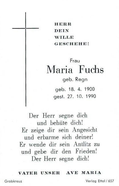 Fuchs Maria geb. Regn 18.04.1900 - 27.10.1990 SB Fuchs Michael 24.05.1938-07.02.1984 Funk Anna geb Bremstahler 10.01.1894-27.09.1971 Fürst Kunigunde geb n.n. 18.04.1928-06.10.2021