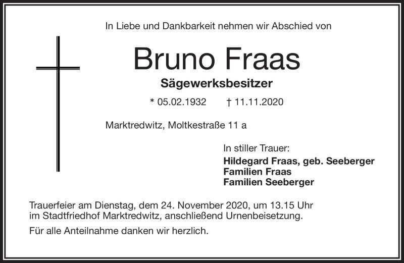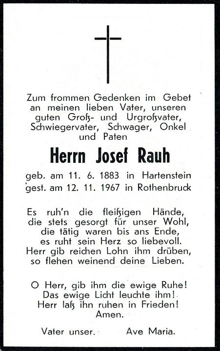 Forster Franz 12.09.1913-31.03.1986 Fraas Bruno 05.02.1932 - 11.11.2020 TA  Sägewerksbesitzer - Rauhenstein Fraas Hildegard geb Seeberger 15.01.1929 - 14.01.2021 TA  Sägewerksbesitzer - Rauhenstein Frank Babette geb Proels 05.11.1886-31.0.1971