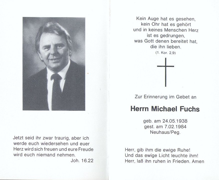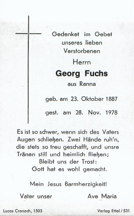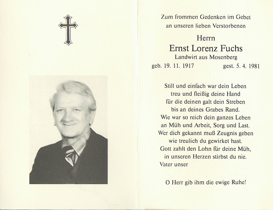 Fuchs Enrst-Lorenz 19.11.1917-05.04.1981 Fuchs Georg 23.10.1887-28.11.1978  Mein Opa Fuchs Günther 05.11.1943-27.07.2009 Fuchs Hans-Michael 28.04.1901-07.01.1976