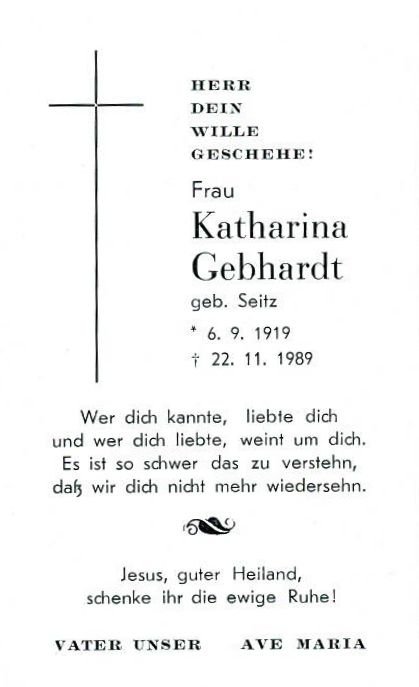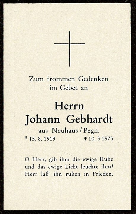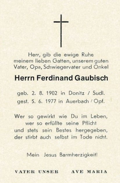 Gaubisch Ferdinand 02.08.1902 - 05.06.1977 SB Gebhardt Johann 15.08.1919 - 10.03.1975 Gebhardt Katharina geb. Seitz - 06.09.1919 - 22.11.1989 SB Gebhardt Michael 26.07.1921-25.04.1967