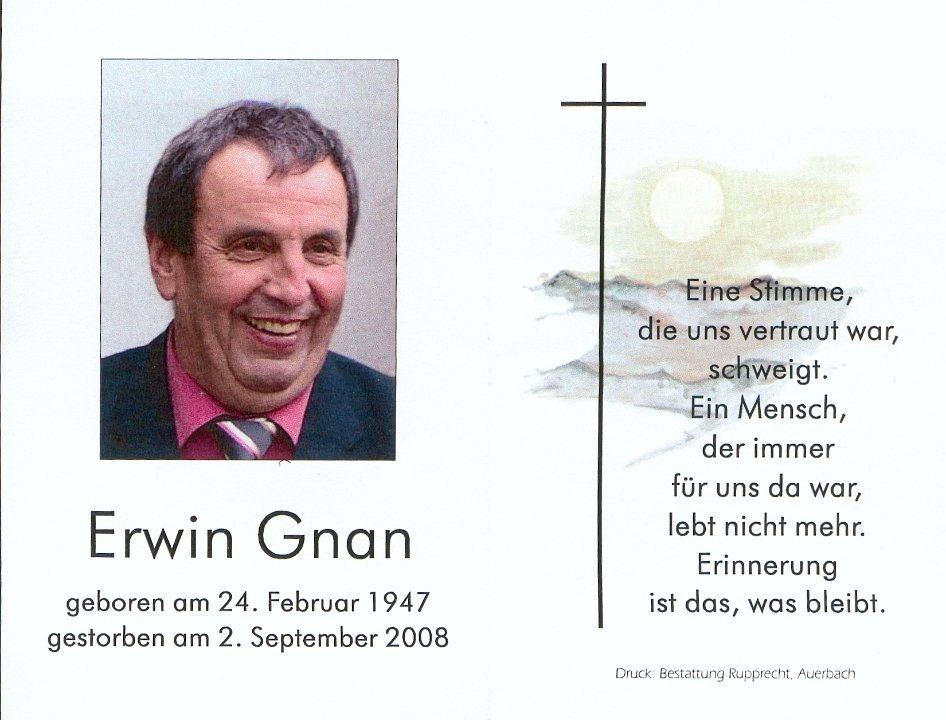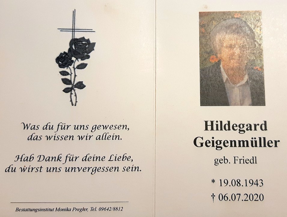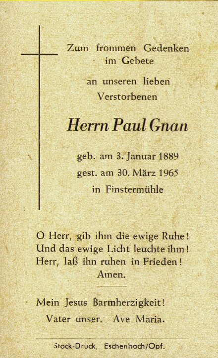 Geigenmüller Hildegard geb. Friedl 19.08.1943-06.07.2020 Gmehling Ludwig 26.11.1915 - 16.11.1967 Gnan Erwin 24.02.1947-02.09.2008 Gnan Paul 03.01.1889-30.03.1965