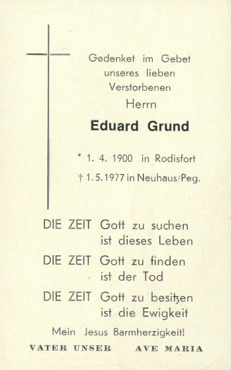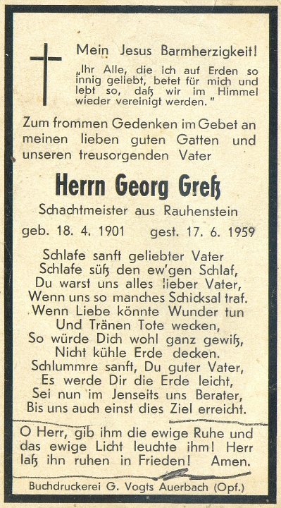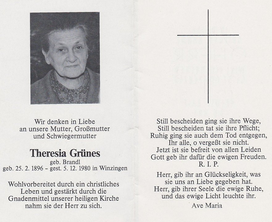 Grams Maria geb Haberberger 1928-11.11.1953 Gress Georg 18.04.1901-17.06.1959 Gruenes Theresia geb. Brandl 25.02.1896 - 05.12.1980 Grund Eduard 01.04.1900-01.05.1977