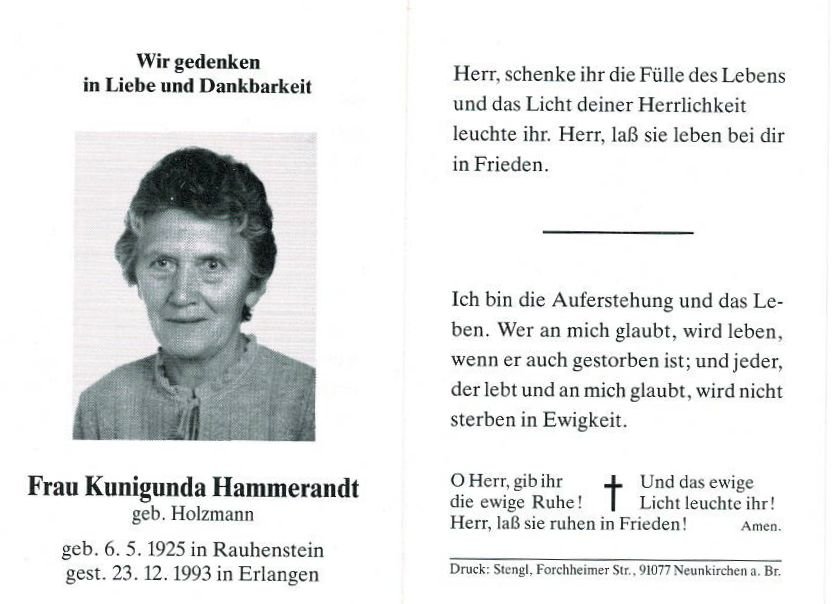 Haberberger Kunigunda geb. Maier 16.05.1955 - 30.11.1955 SB Habermann Franz 17.07.1935-19.07.2004 Hammerandt Alfons - 06.10.1936 - 26.02.1985 SB Hammerandt Kunigunda geb. Holzmann 06.05.1925 - 23.12.1993 SB