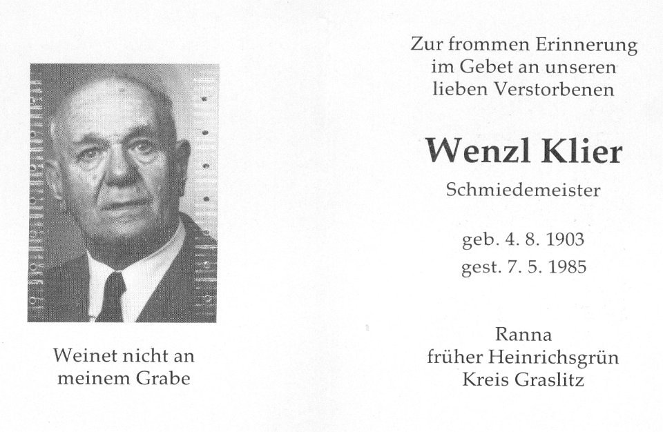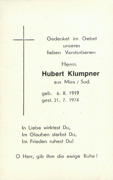 Klier Wenzl 04.08.1903-07.05.1985 Klinger Josef 23.09.1937 - 24.12.2016 Klinner Magdalena geb Herr 10.04.1932-13.09.2003 Klumpner Hubert 06.08.1919-21.07.1974