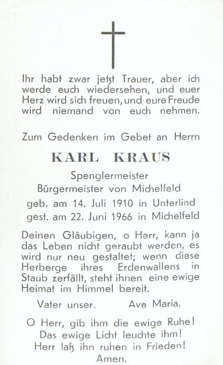 Kraus Andreas 20.02.1925-28.04.1986 Kraus Georg 15.11.1967-13.10-1973 Kraus Karl 14.07.1910-22.06.1966 Kress Rudolf 06.11.1882 - 28.03.1967