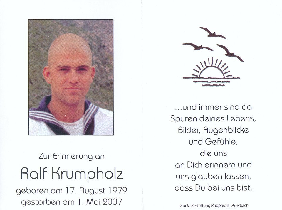Krieger Rudolf 18.12.1941 - 22.02.1993 SB Kroder Hans 16.10.1943 - 18.09.2012 Kroher Kunigunda geb Goetz 07.06.1929-08.01.1979 Krumpholz Ralf 17.08.1979-01.05.2007