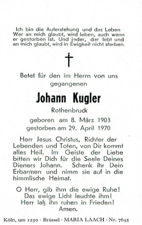 Kugler Johann 08.03.1903 - 29.04.1970 Kunz Georg 24.06.1925 - 16.01.2017 SB Kupilas Josef 21.06.1872-27.10.1942 Kurz Maria geb. Kohl 02.04.1913 - 19.03.2004 SB