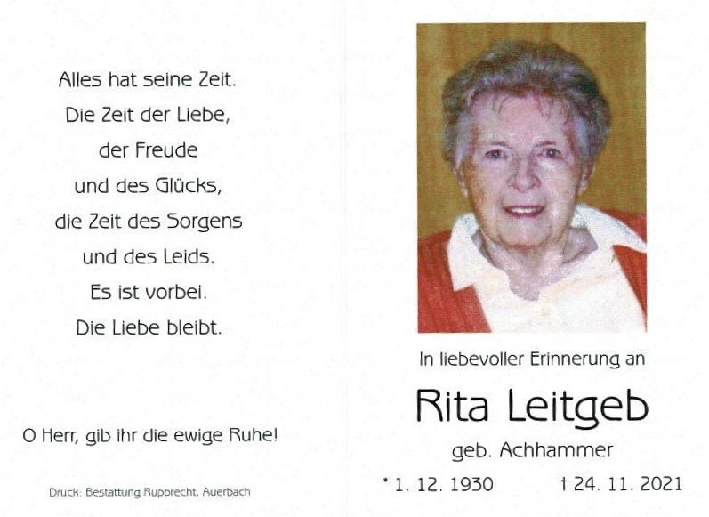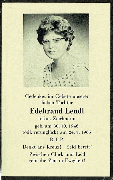 Leitgeb Rita geb Achhammer 01.12.1930-24.11.2021 Lendl Edeldtraud 30.10.1946 - 24.07.1965 Lendl Maria 31.08.1924-16.08.1974 Lendl Theresia 04.07.1951-25.09.1969