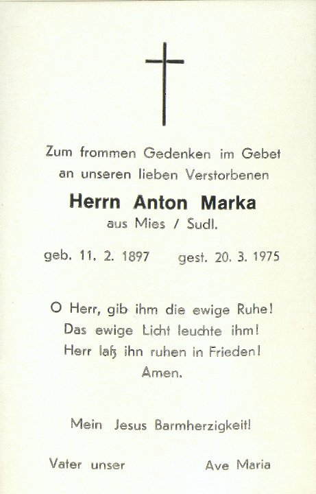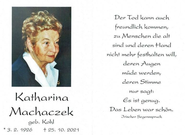 Machaczek Katharina geb Kohl 03.02.1926-25.10.2021 Maier Hans 07.12.1893 - 01.012.1955 SB Marka Anton 11.02.1897-20.03.1975 Marx Emil 28.01.1937 - 06.04.2018
