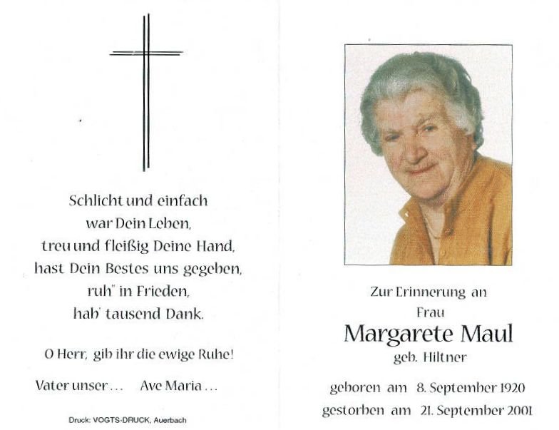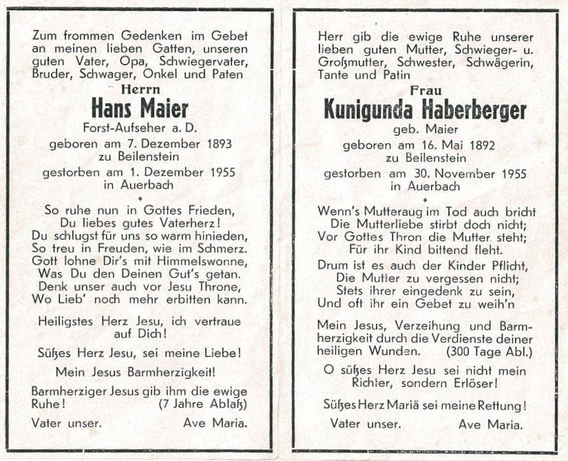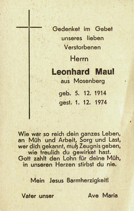 Maul Leonard 05.12.1914.01.12.1974 Maul Margarete geb. Hiltner 08.09.1920 - 21.09.2001 SB Meier Josef 03.12.1895 - 24.04.1972 Meier Leonard 09.06.1898-10.03.1969