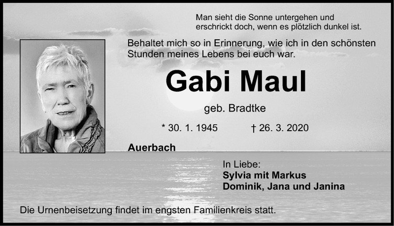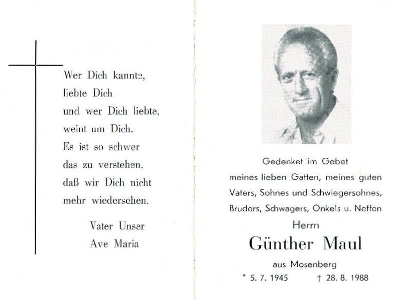Maul Betty geb Neubauer 06.06.1932-28.09.2021 Maul Fritz 17.10.19221-28.11.1981 Maul Gabi geb. Bradtke 30.01.1945 - 26.03.2020 SA Maul Günther 05.07.1945 - 28.08.1988 SB