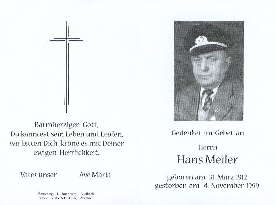 Meiler Hans 31.03.1912-04.11.1999 Meiler Helga geb. Frühbeißer 19.06.1954-21.04.2022 Meiler Johann 23.09.1894-14.11.1967 Meiler Karl 31.01.1887-01.02.1979