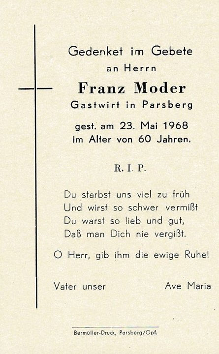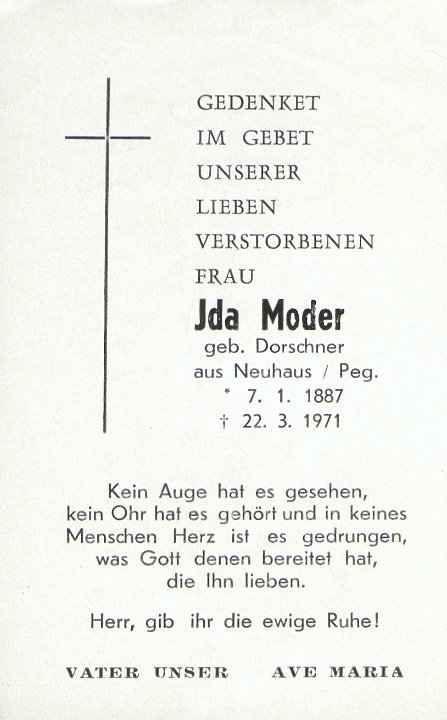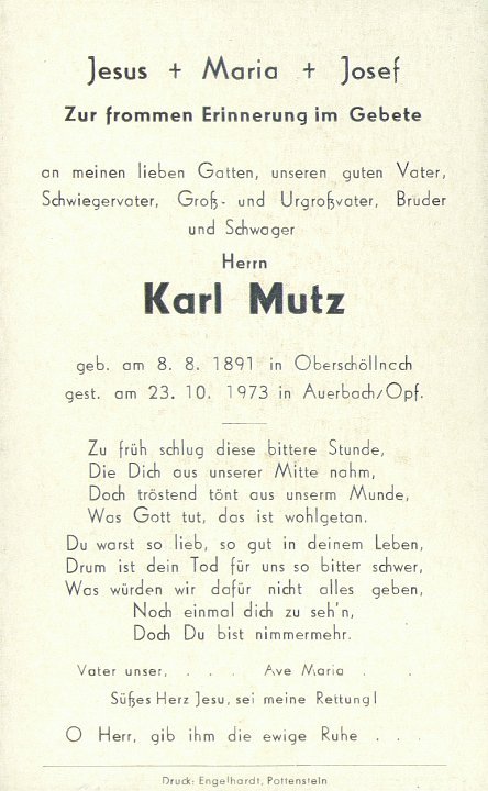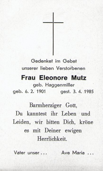 Moder Franz 1906 - 23.05.1968 Moder Ida geb Dorschner 07.01.1887-22.03.1971 Mutz Eleonore geb Haggenmiller 06.02.1901-03.04.1985 Mutz Karl 08.08.1891-23.10.1973