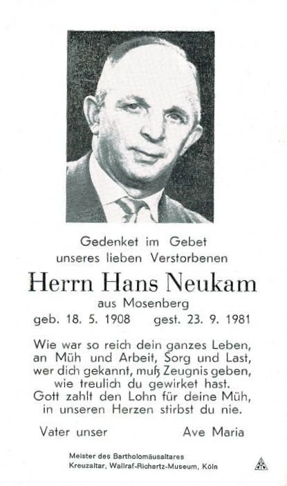 Neubauer Hans 07.12.1942 - 12.07.2018 Neukam Elise geb. Fuchs 25.02.1912 - 03.11.1989 SB Neukam Hans 18.05.1908 - 23.09.1981 SB Neuner Lies geb Nairz 01.03.1924 - 28.12.2016