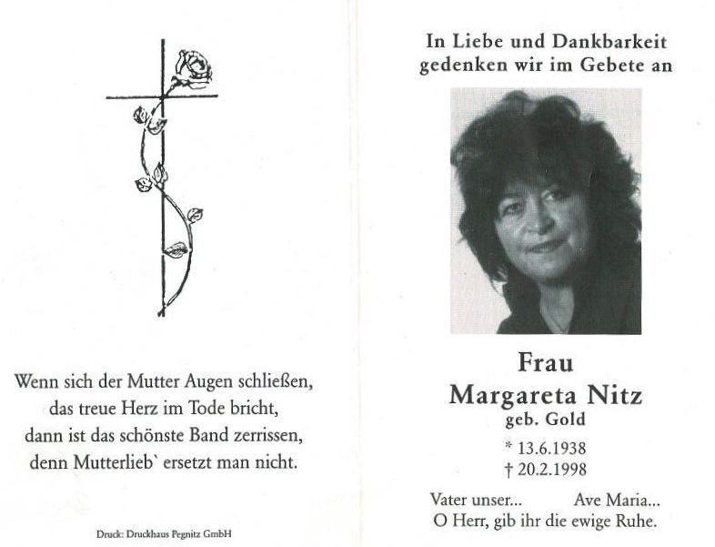 Neuser Johann 05.02.1904-07.02.1967 Nitz Margareta geb. Gold 13.06.1938 - 20.02.1998 Nürnberger Karl 23.03.1934 - 09.08.2019 Nürnberger Theresia geb Rass 10.08.1936-10.04.1998