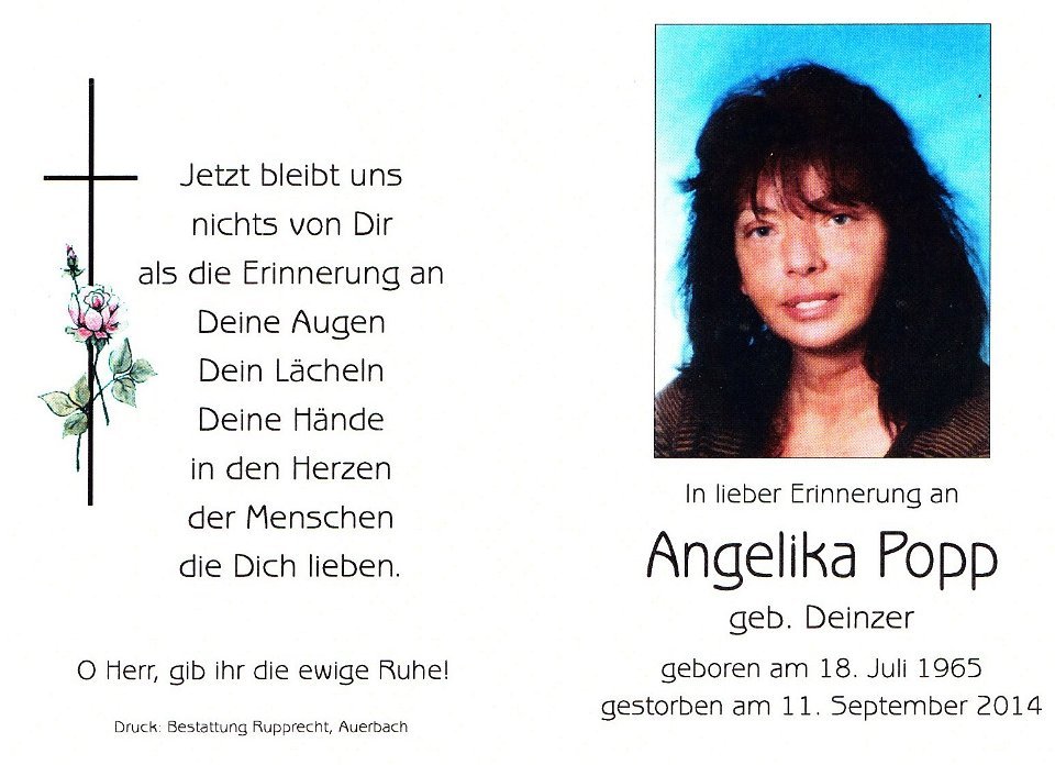 Popp Angelika geb. Deinzer 18.07.1965-11.09.2014 Popp Joseph 10.10.1887-10-.06.1938 Post Roland 15.05.1959 - 06.12.2019 Poster Helmut 23.05.1939-07.10.1973