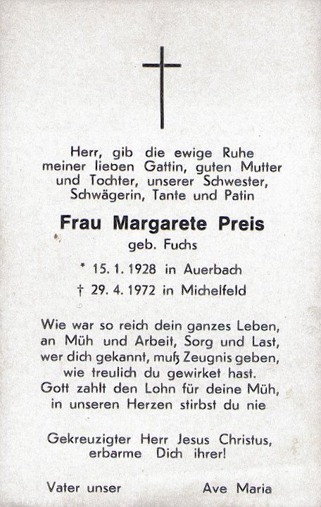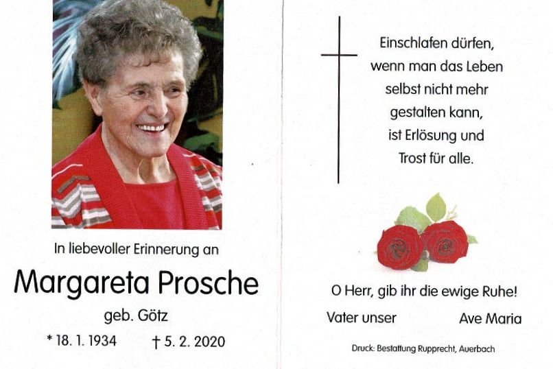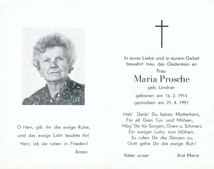 Prass Georg 04.04.1915-15.07.1977 Preis Margarete geb Fuchs 15.01.1928-29.04.1972 Prosche Margareta geb. Goetz 18.01.1934 - 05.02.2020 Prosche Rudolf 22.05.1933 - 01.02.2012