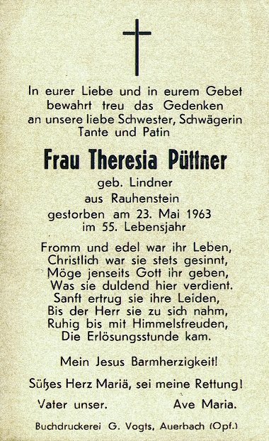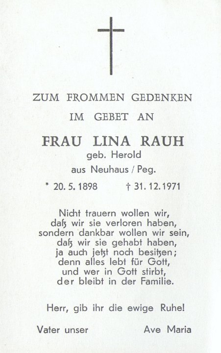 Prosche Maria geb Lindner 16.02.1914-21.04.1992 Prunner Emmy geb Winter 16.03.1883-23.10.1962 Puettner Theresia geb Lindner 1908-23.05.1963 Rauh Josef 11.06.1883 - 12.11.1967