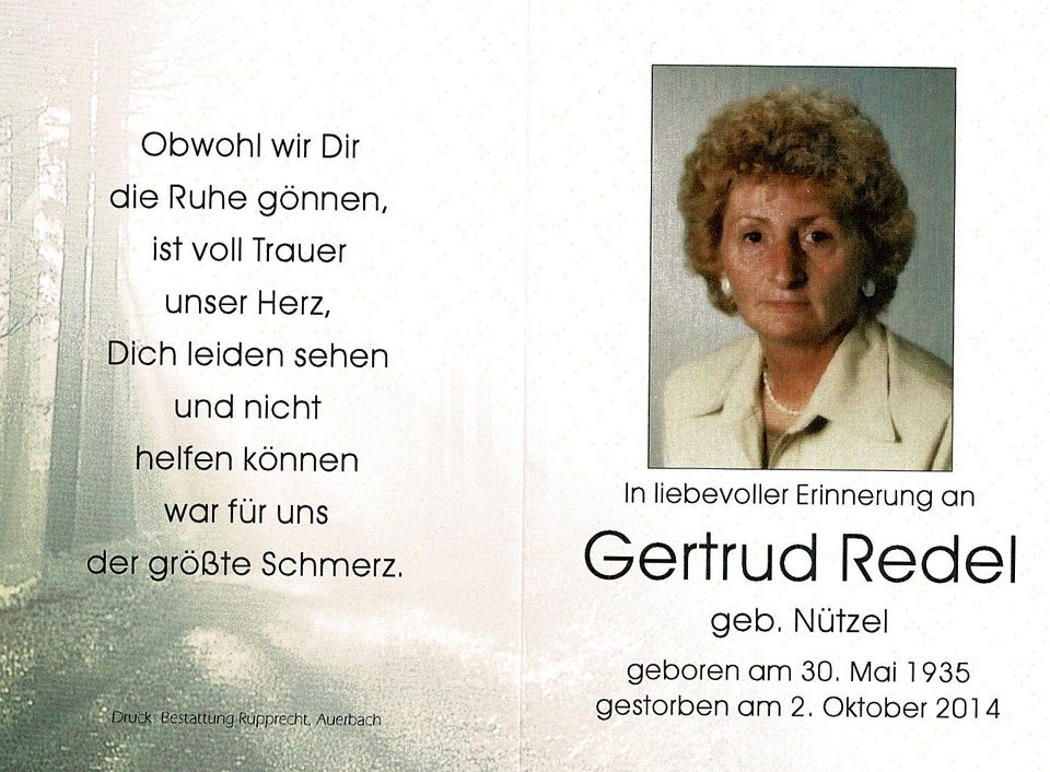 Rauh Franz 29.10.1951-20.06.1978 Rauh Lina geb Herold 20.05.1898-31.12.1971 Rechner Hermann 20.09.1941 - 30.04.2012 Redel Gertrud geb Nuetzel 30.05.1935 - 02.10.2014