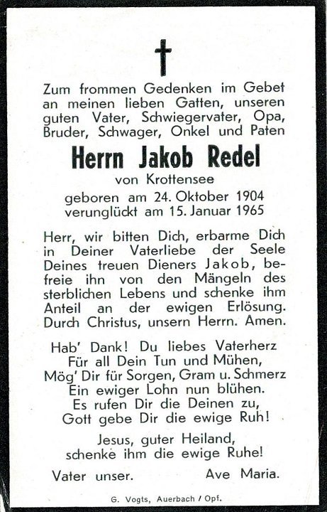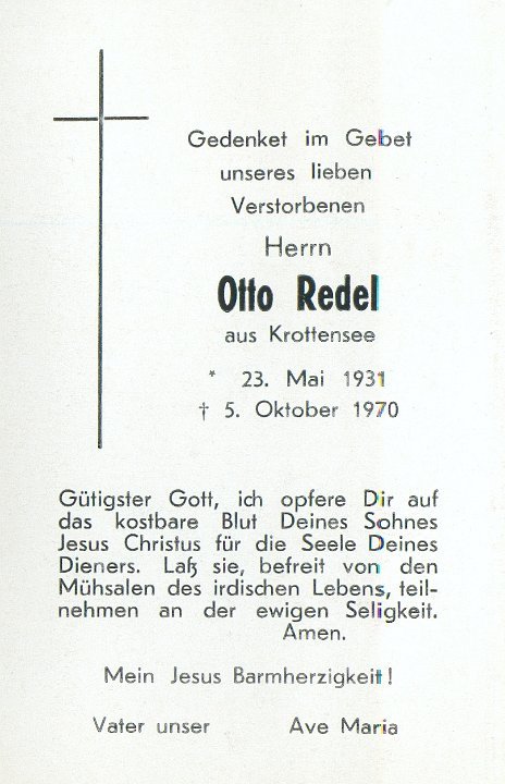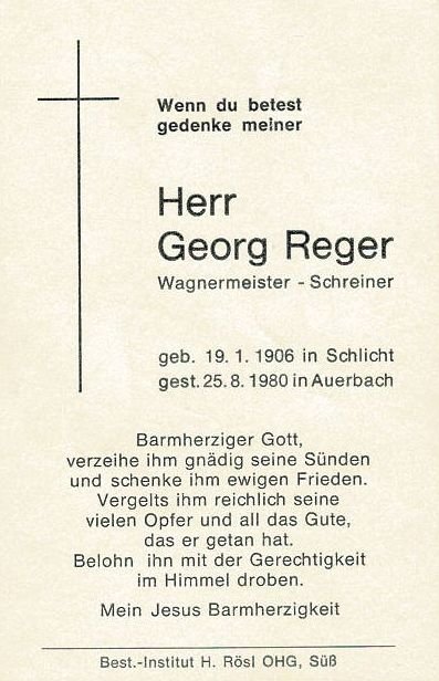 Redel Jakob 24.10.1904 - 15.01.1965 Redel Otto 23.05.1931-05.10.1970 Reger Georg 19.01.1906 - 25.08.1980 SB Regn Georg 11.12.1896 - 07.01.1966