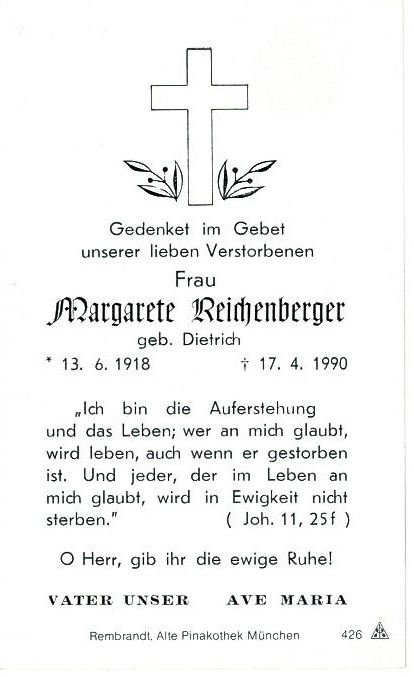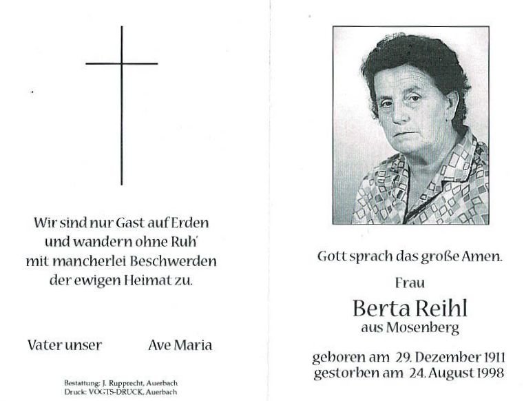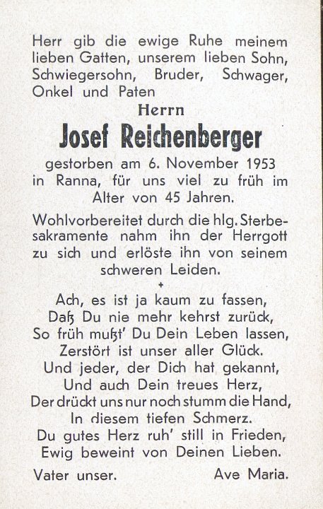 Reichenberger Josef 1908-06.11.1953 Reichenberger Margarete geb. Dietrich 13.06.1918 - 17.04.1990 SB Reihl Berta 29.12.1911 - 24.08.1998 SB Reihl Bruno 07.02.1942-18.10.2008