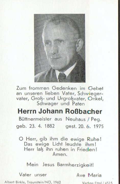 Ringl Josef 28.11.1912-15.12.1966 Roder Johann 01.12.1906 - 04.10.1995 SB Rossbacher Johann 23.04.1882-20-06.1975 Rossbacher Magdalena geb Fuchs 22.12.1889-31.03.1968