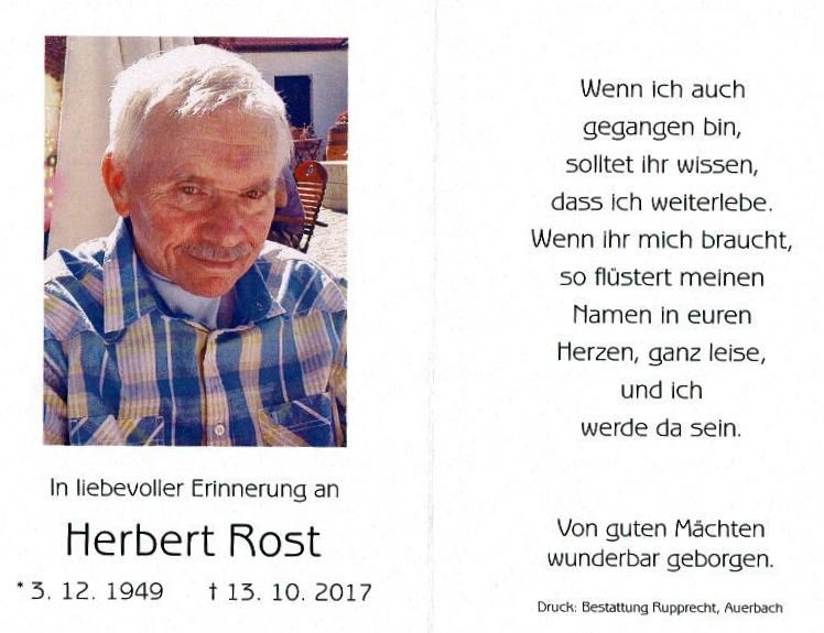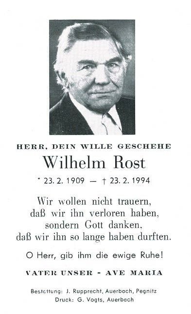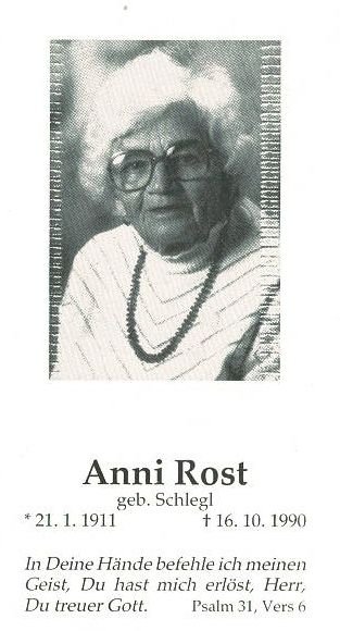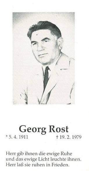 Rost Herbert 03.12.1949 - 13.10.2017 Rost Anni geb. Schlegl 21.01.1911 - 16.10.1990 SB Rost Georg 05.04.1911 - 19.02.1979 SB Rost Wilhelm 23.02.1909 - 23.02.1994 SB