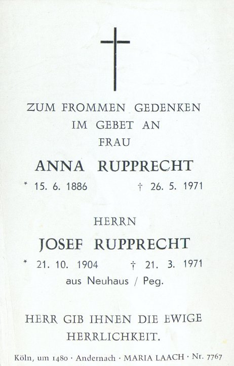 Roth Hermann 19.08.1960 - 04.03.2018 Rupprecht Anna 15.06.18886-26.05.1971 und Josef 21.10.1904-21.03.1971 Rupprecht Paul 28.01.1917-05.11.1995 SB Santl Alois - 11.11.1911 - 4.6.1979