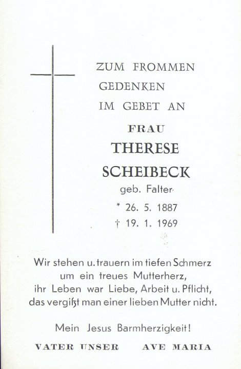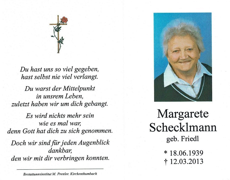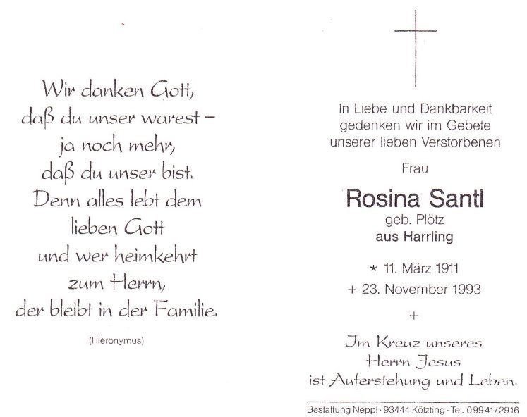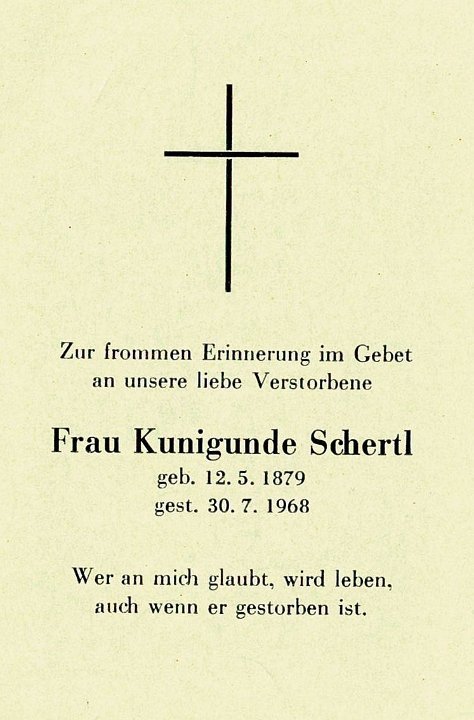Santl Rosina geb. Ploetz - 11.03.1911 - 23.11.1993 Schecklmann Margarete geb Friedl 18.06.1939 - 12.03.2013 Scheibeck Therese geb Falter 26.05.1887-19.01.1969 Schertl Kunigunde 12.05.1879 - 30.07.1968