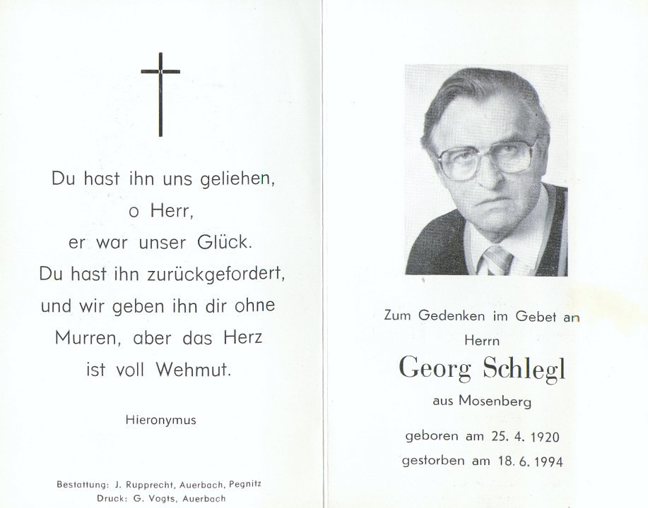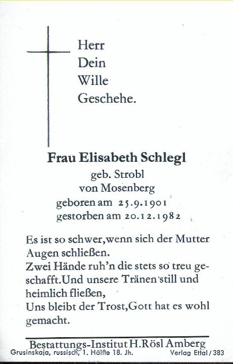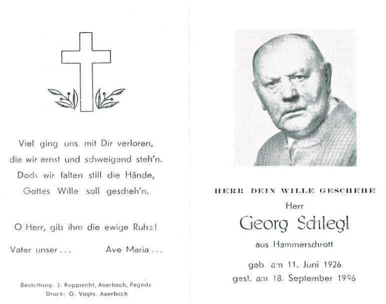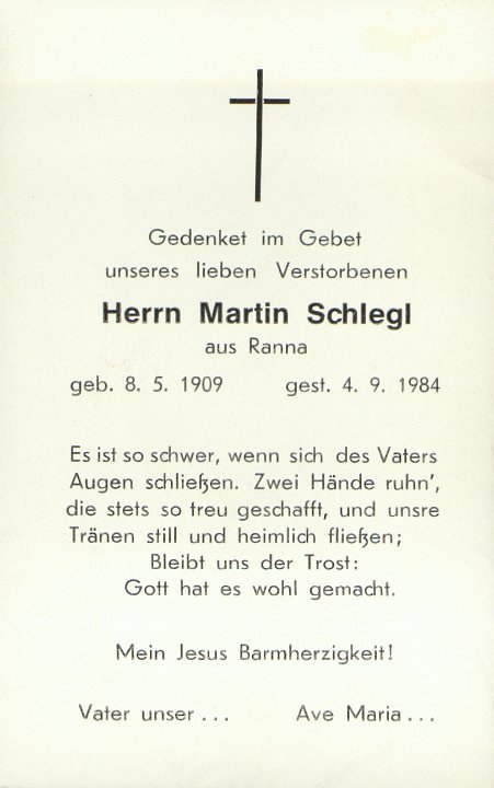 Schlegl Elisabeth geb Strobl 25.09.1901-20.12.1982 Schlegl Georg - 11.06.1926 - 18.09.1996 SB Schlegl Georg 25.04.1920-18.06.1994 Schlegl Martin 08.05.1909-04.09.1984