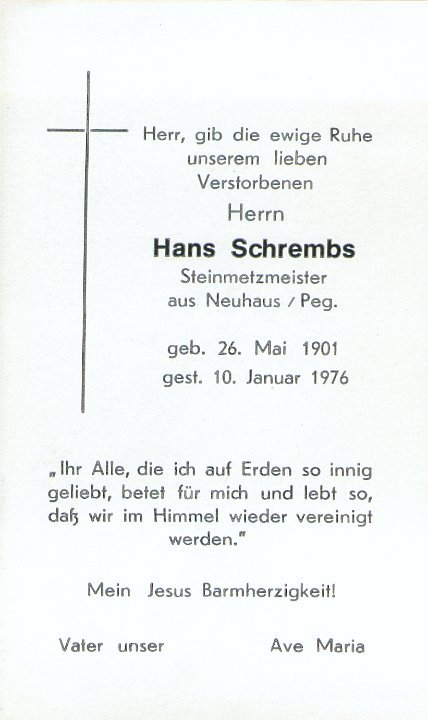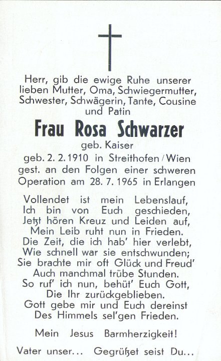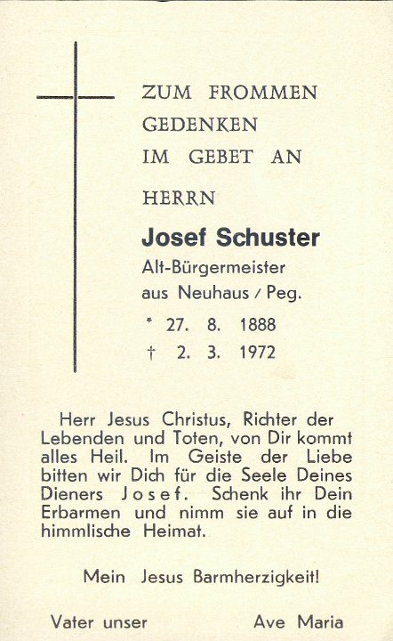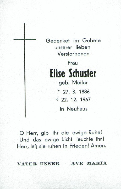 Schrembs Hans 26.05.1901-10.01.1976 Schuster Elise geb Meiler 27.03.1886-22.12.1967 Schuster Josef 27.08.1888-02.03.1972 Schwarzer Rosa geb Kaiser 02.02.1910-28.07.1965