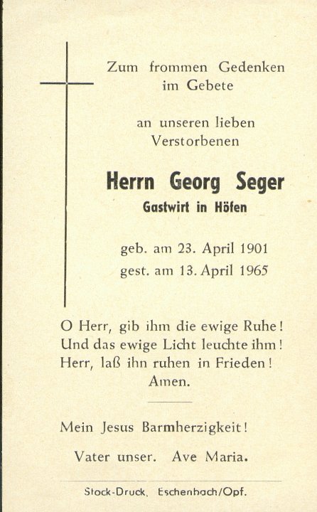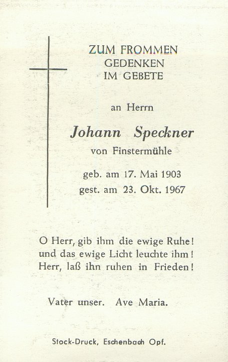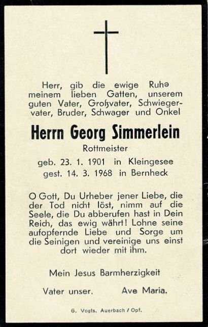 Simmerlein Georg 23.01.1901 - 14.03.1968 SB Sollfrank Hennes 15.06.1952 - 29.04.2019 Sommer Magdalena geb Ringer 02.10.1903-30.03.1975 Speckner Johann 17.05.1903-23.10.1967