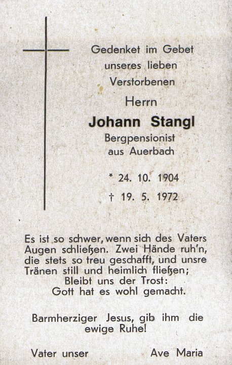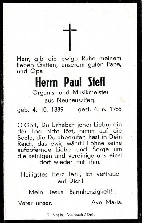 Speckner Theresia geb Friedl 03.06.1905-25.10.1983 Stangl Johann 24.10.1904-19.05.1972 Stefl Paul 04.10.1889 - 04.06.1965 Steger Erhard - 21.06.1904 - 27.03.1983 SB