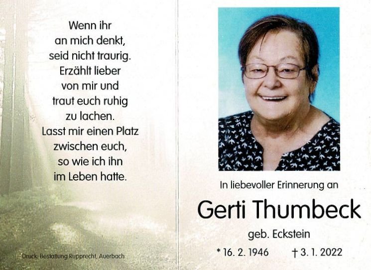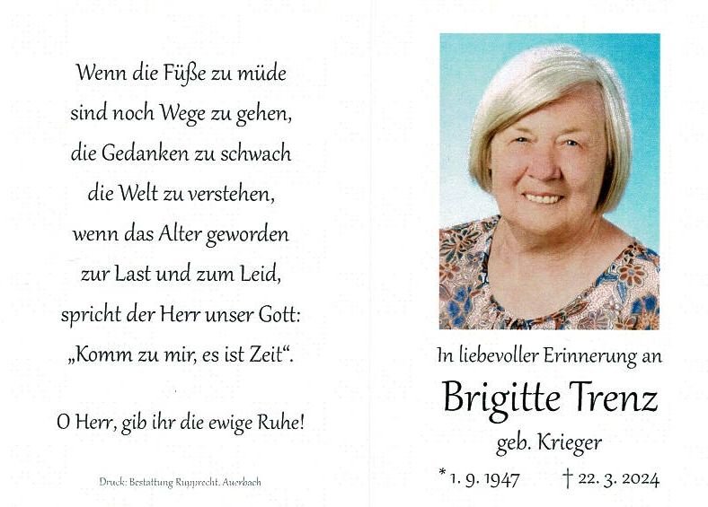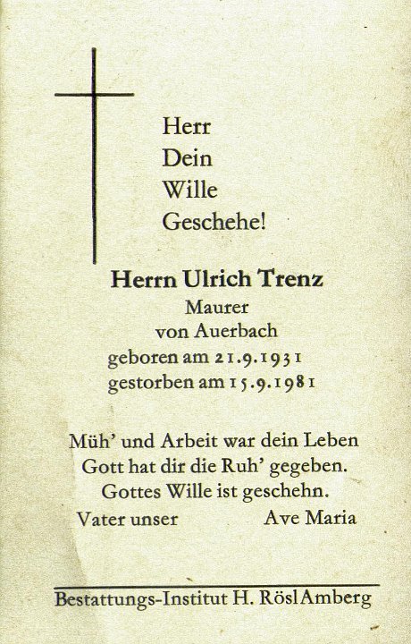 Thumbeck Gerti geb Eckstein 16.02.1946-03.01.2022 Trenz Brigitte geb. Krieger 01.09.1947 - 22.03.2024 SB Trenz Georg 1854-25.10.1929 Trenz Ulrich 21.09.1931-15.09.1981