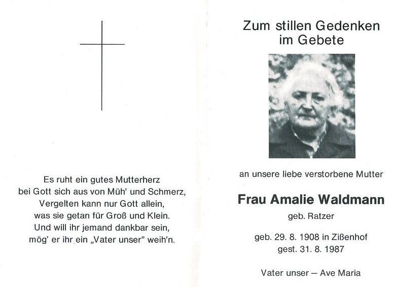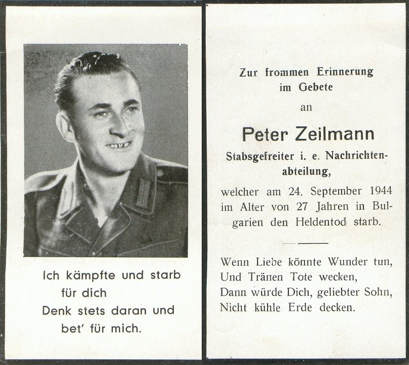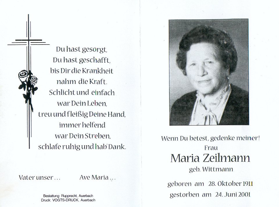 Zeilmann Albert 1919-20.09.1941 Zeilmann Georg 1912-16.10.1942 Zeilmann Maria geb Wittmann 28.10.1911-24.06.2001 Zeilmann Peter 1917-24.09.1944