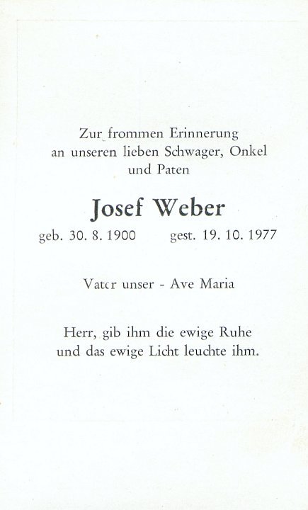 Weber Josef 30.08.1900-19.10.1977 Weber Kunigunda geb Herold 24.03.1897-04.12.1974 Weber Maria geb Grellner 23.08.1907-08.11.1975 Wegner Albert 05.05.1959 - 20.06.2018