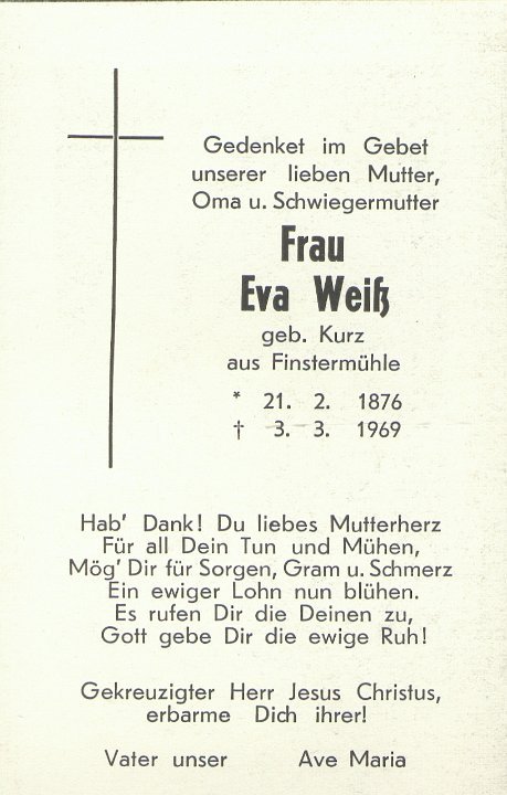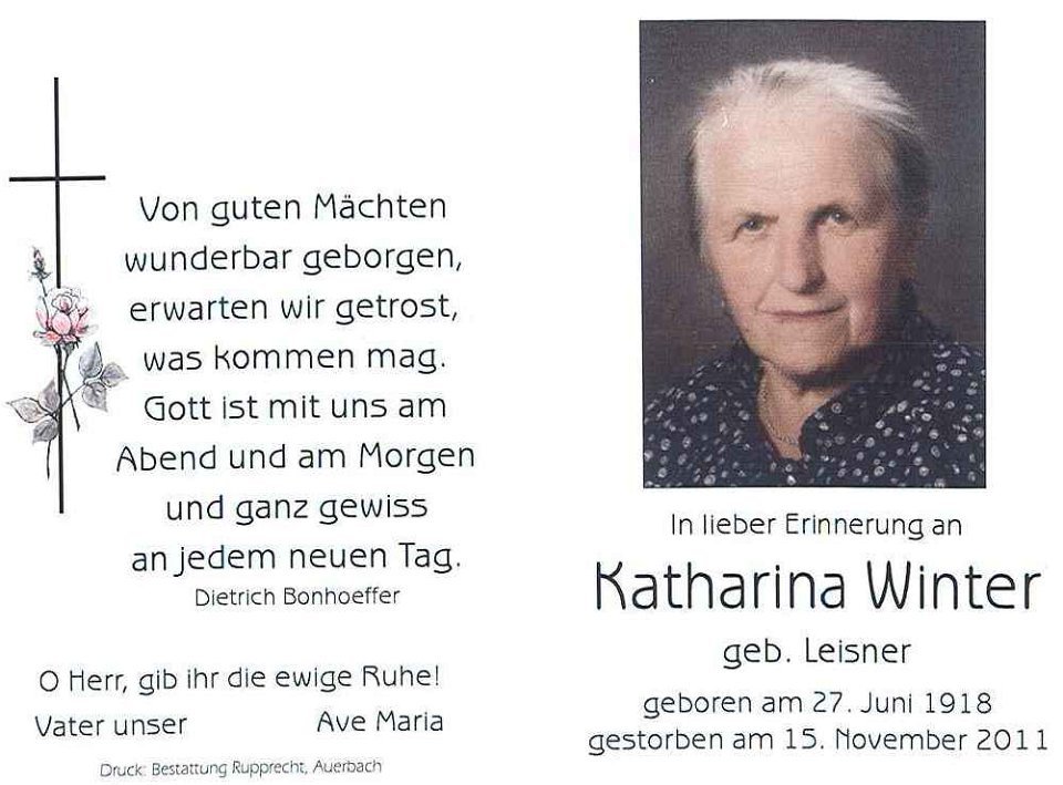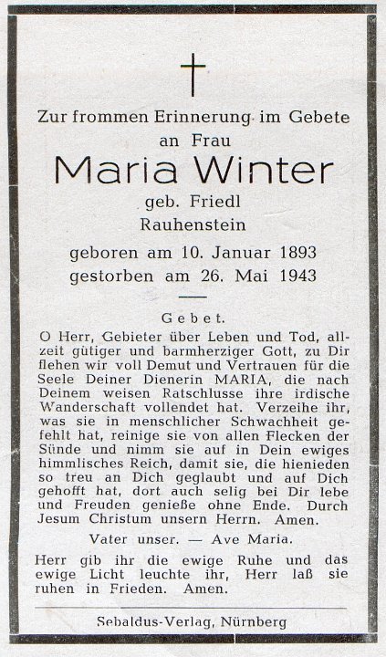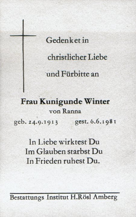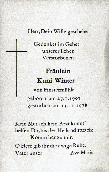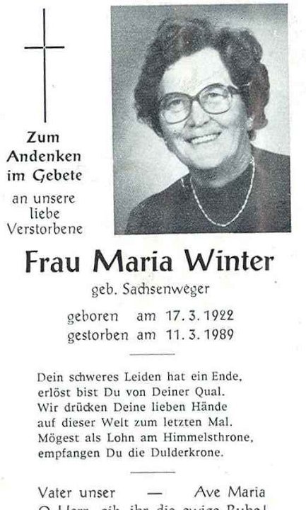 Winter Kunigunde 24.09.1913-06.06.1981 Winter Kuni 27.01.1907-13.11.1978 Winter Maria geb Friedl 10.01.1893-26.05.1943 Winter Marie 07.10.1886-07.07.1930