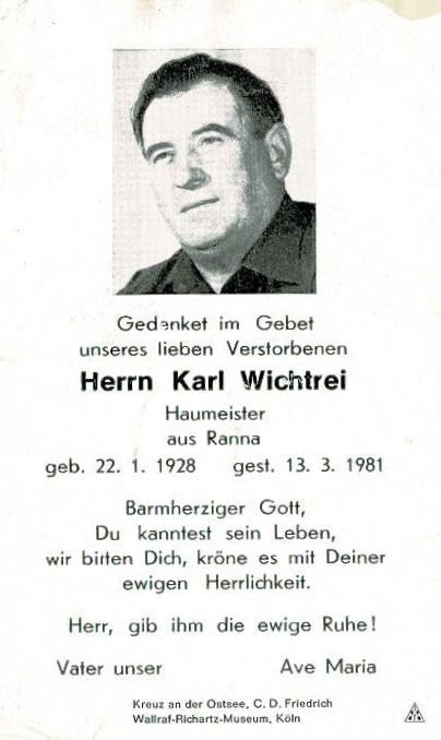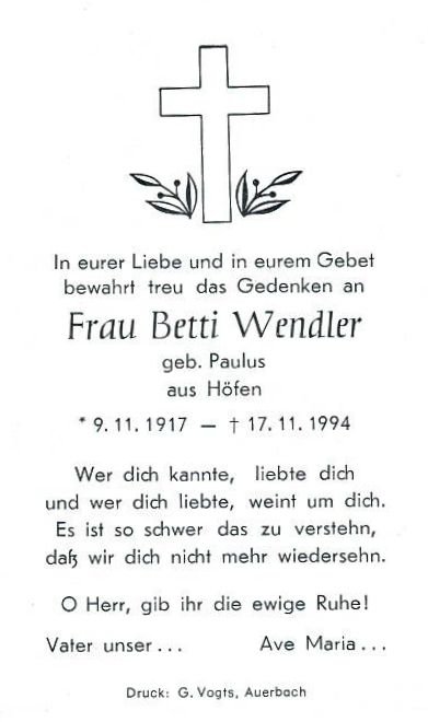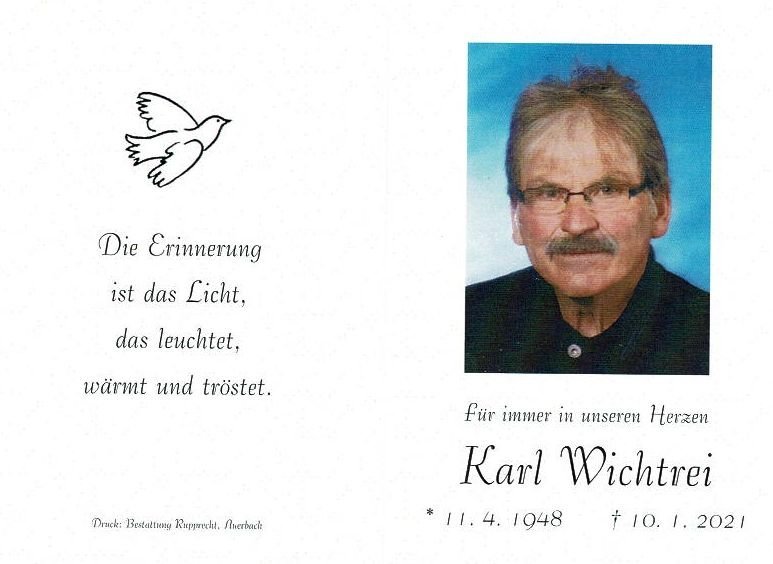 Wendler Betti geb. Paulus 09.11.1917 - 17.11.1994 SB Wettengel Heinrich-Franz 04.06.1937-06.07.2001 Wichtrei Karl 11.04.1948 - 10.01.2021 Wichtrei Karl 22.01.1928 - 13.03.1981