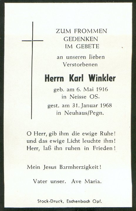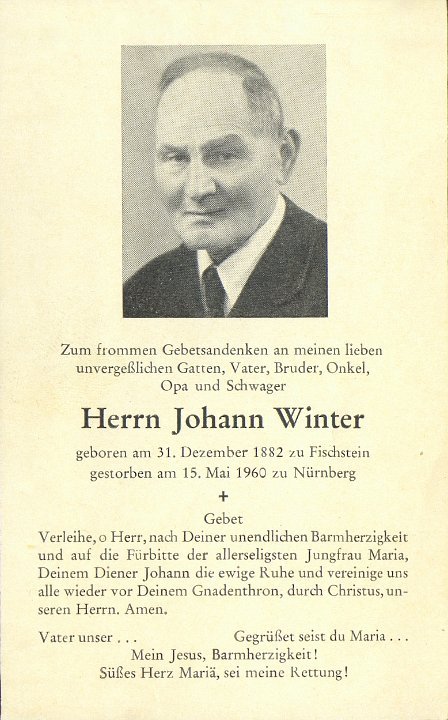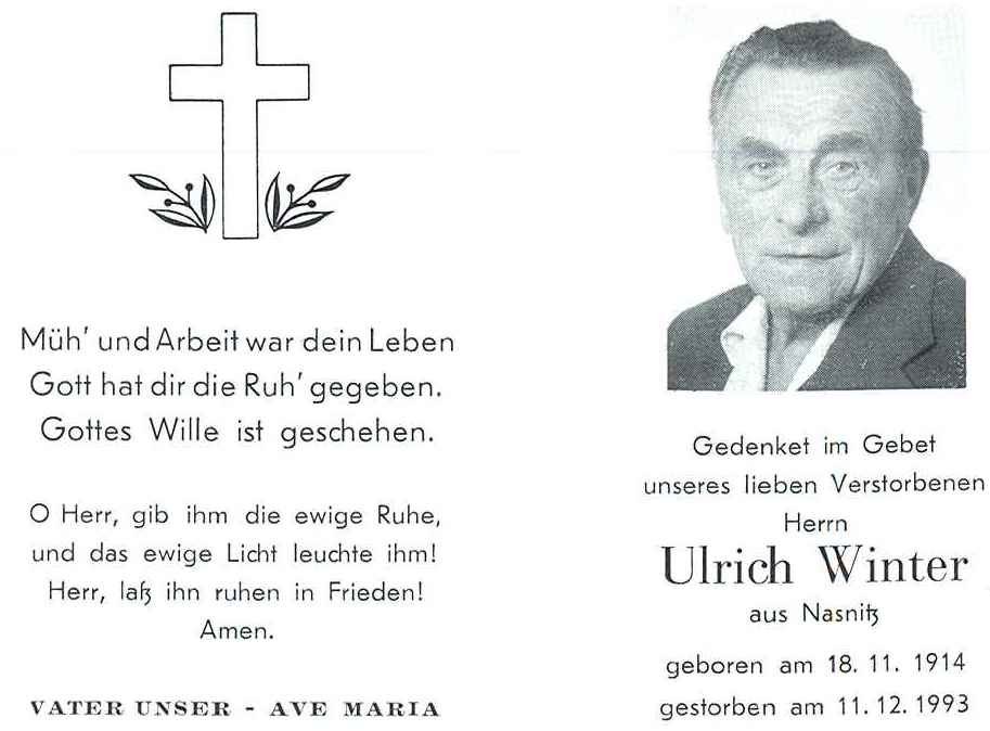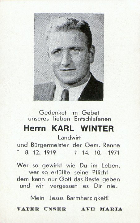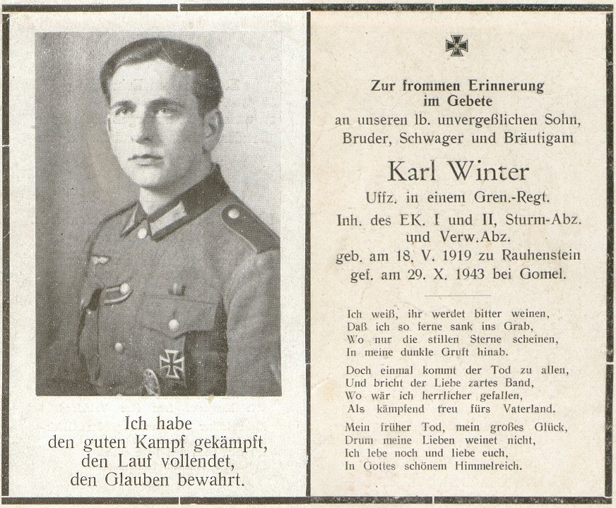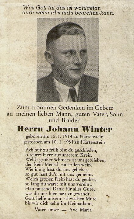 Winter Johann 15.01.1914-10.01.1951 Winter Johann 31.12.1882-15.05.1960 Winter Karl 08.12.1919-14.10.1971  Mein Vater Winter Karl 18.5.1919-29.10.1943